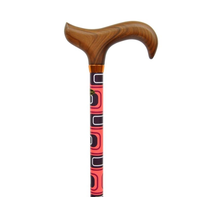 Canne alu motifs carrés diamètre 19 réglable poignée bois AQ024